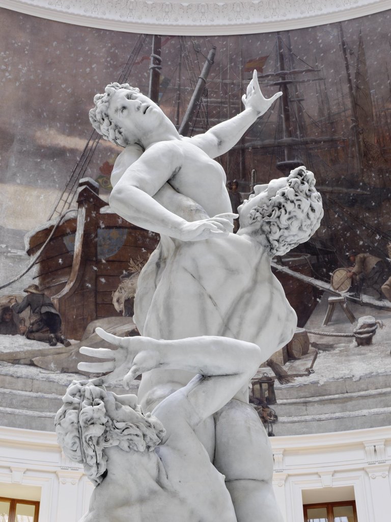 The Pinault Collection just opened, so it is harder to define their curatorial profile, but the inaugural exhibition hints towards their focus: contemporary international art mixing established artists and lesser known names. According to Pinault, he wants the collection to be “in constant resonance with its time”, which is exactly what his labels must do to remain relevant. The renovation mixes the traditional restaured architecture of the storied building with a brutalist contemporary accent given by Tadao Ando. Again, like in a luxury fashion show from a storied Maison, the goal is to give contemporary relevance to tradition. The result is visually powerful, masterfully balancing the delicacy of the original building and the roughness of the concrete in “a subtle dialogue between new and old” according to the architect himself. Concerning the collection, it is worth mentioning the dedicated artwork by Urs Fisher, presented in the central rotunda. “Composed of wax sculptures, Untitled (2011) is a group of monumental candles lit on the first day of the exhibition. It is a life-size replica of a famous sculpture from the Mannerist period: Giambologna’s The Abduction of the Sabine Women (1579-1582).” As the exhibition goes on, the wax melts and the artworks decays, “that which seemed perennial and genuine, turns out to be fragile and fictitious.” embodying the fleetingness of time and things, even cultural masterpieces. Another in-situ work reflecting on the fleetingness of time and in conversation with the museal institution, is the ensemble of 8 sculptures, “The Guardian” by Tatiana Trouve scattered all over the museum. Each represents an empty museum guardian’s chair in marble, onyx, bronze and copper – all lasting materials – with personal belongings hinting at the individuality of the eerie presence of their absent owners.