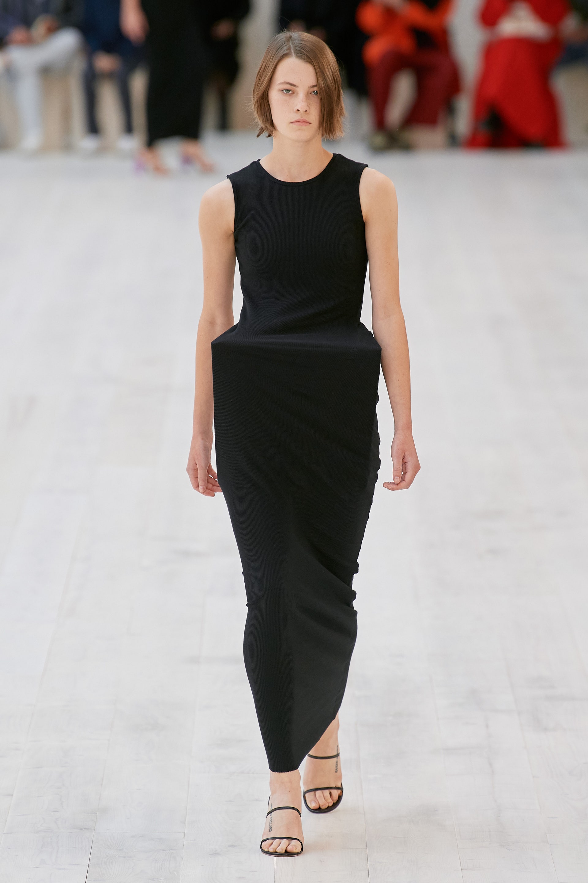 It is also worth mentioning that Anderson has been a patron of the art at least since he took the helm of Loewe in 2013, introducing the Loewe Foundation Craft Prize, and this interest shows in his collections. The SS22 show, inspired from the 15th century Florentine Mannerist artist Pontormo, expresses his willingness to challenge the status quo. What went down the runway were plain fitted dresses with inserted metal shapes exaggerating the hips, shoulders, or waist, in a sculptural fashion (modifying the shape of the body through fashion was one of the most important prongs of Martin Margiela‘s work in the 90s), shiny gilded torsos akin to contemporary art pieces by an artist like Anish Kapoor, and surrealist accessories as ready-mades a la Marcel Duchamp.