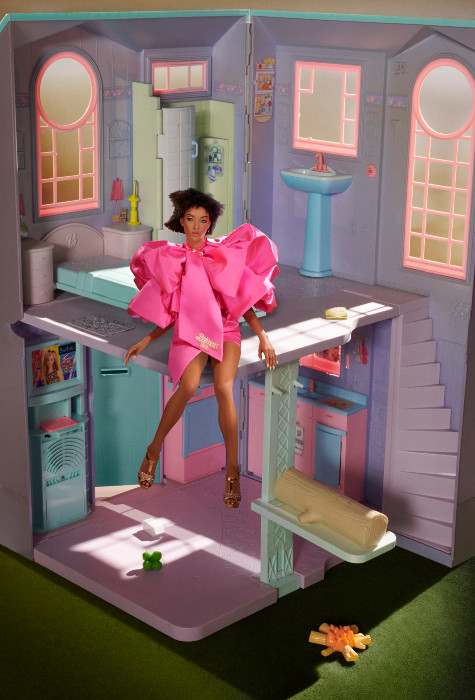 Therefore, inventive design is certainly not the point of this collaboration. Two elements, yet, make this collaboration exponentially more interesting than a conspicuous display of logos. The NFTs auction, of course, but also the genderlessness of most pieces. Indeed, Olivier Rousteing wanted to take revenge for the little boy he was, shamed for playing with Barbie dolls deemed a “girl toy”. It is a bold take considering Barbie might be among the most potent incarnations of the gender norms imposed on women and children. They used to perpetuate a uniform standard of beauty and perform activities that were traditionally attributed to women. Barbie has always been a mirror of its time and as expectations about women’s roles, duties and looks evolved, so did the doll. Now, Barbies perform any type of works and activities and Black, Asian, as well as body-inclusive dolls are sold since the middle of the past decade. She has been an astronaut, president and CEO,