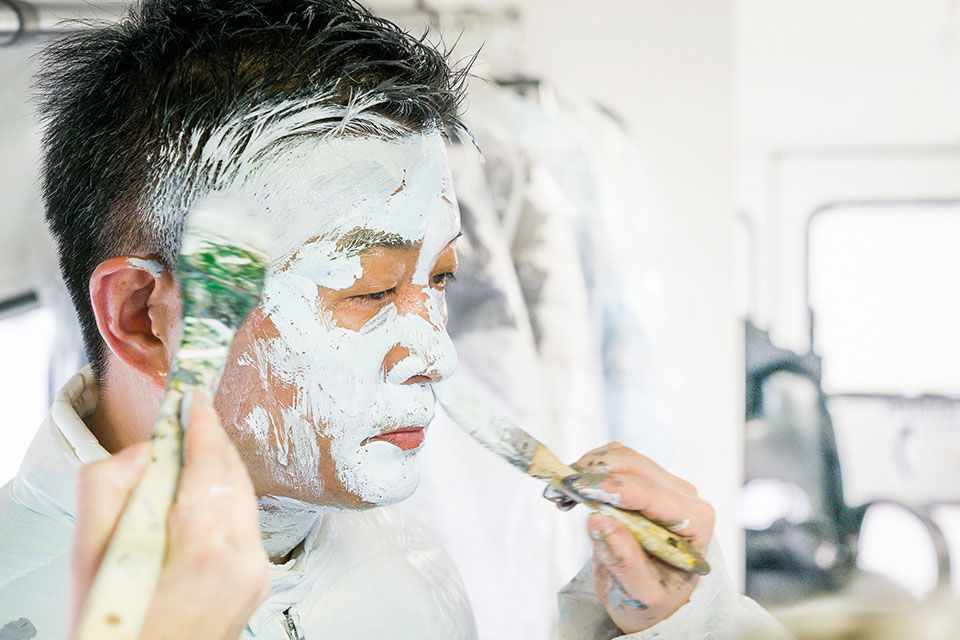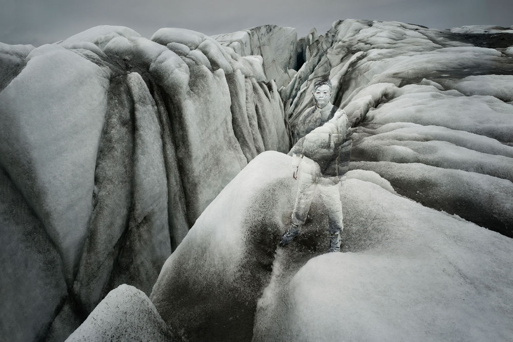 Liu Bolin took part in other collaborations within the luxury industry, stressing the similarities in their approach to the dichotomy between the individual and the multitude, and his effort to reconcile both through culture. In 2018, he collaborated with Ruinart, part of the LVMH group, and in 2017 with Moncler, for which he was photographed by Annie Leibowitz in the middle of nature, as opposed to the cities he usually focuses on. About his collaboration with Moncler, Bolin explained that “the collaboration with Moncler shows [his] intention of inviting individuals to experience, and to contemplate art in everyday life. As we stand at the intersection of the postindustrial and virtual age, the interrelationship among modern technology, man-made landscapes, and human beings themselves has become the point of departure in my works.”