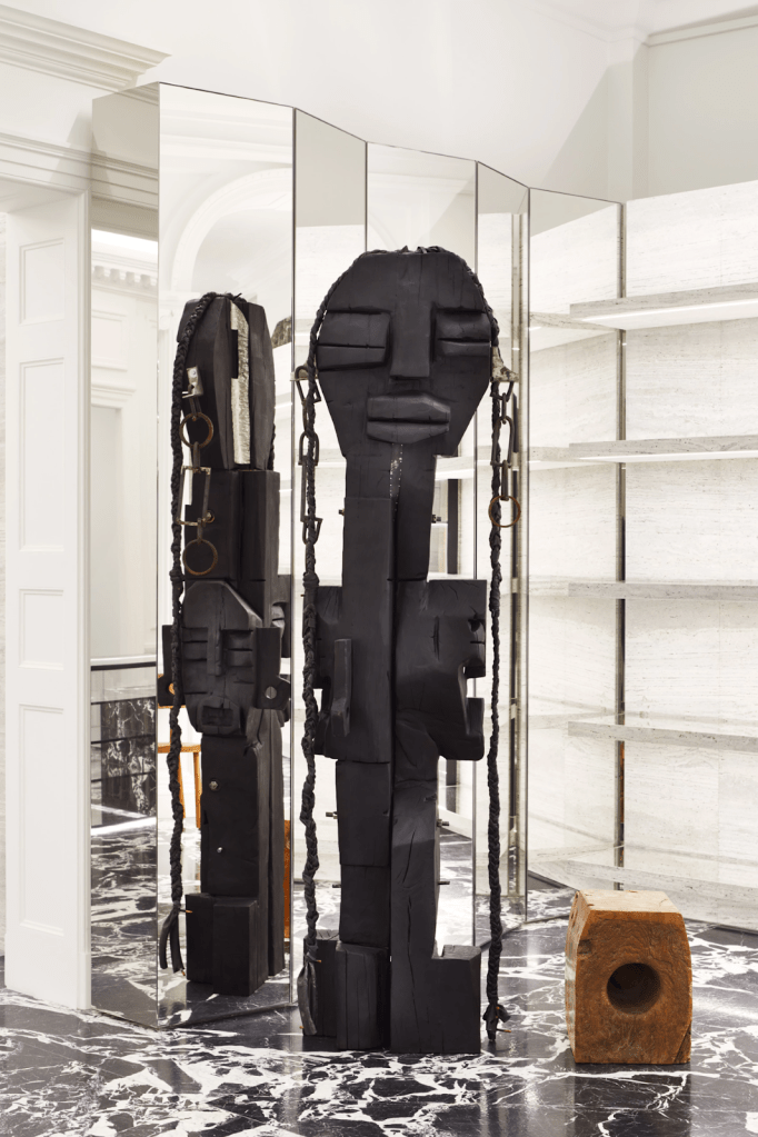 The introduction of art works in the shops therefore expands the retail experience through the lens of the relationship between the body and the clothes into the space at large, and into the mind. But another critical effect of this potent display of unity between art and fashion is the elevation of fashion items to the rank of artworks, it gives them a sense of nobility that is not traditionally associated with clothes. At the same time, it is a reflection on the commodification of art, fashion, it is a given, is highly commodified and luxury is here again trying to move away from this characteristic.