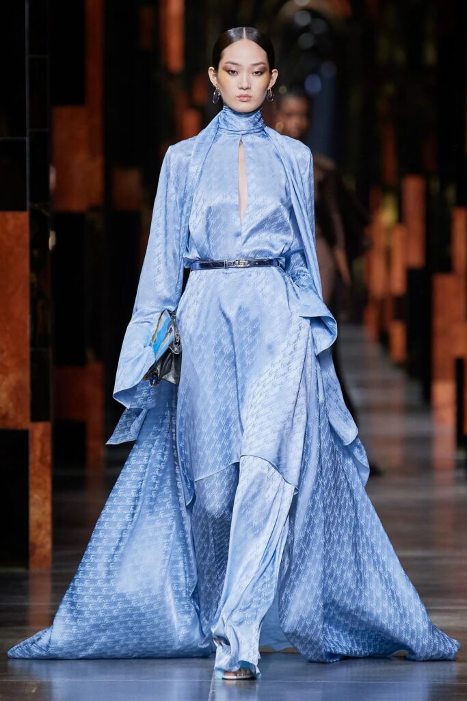 Since taking the helm of Fendi in 2019, at the death of Karl Lagerfeld, Jones has been taking his marks in the storied women-operated label, working alongside Silvia Venturini Fendi and her daughter Delfina Delettrez Fendi. His first silhouettes were deemed harsh and stoic, recalling the Roman columns of the Italian capital in which the house was founded. For his SS22 collection, yet, he proposed a lighter, more feminine disco take on the codes of the Maison, astutely digging around the history of the label, and focusing on partying and going out after the lockdowns digital shows.