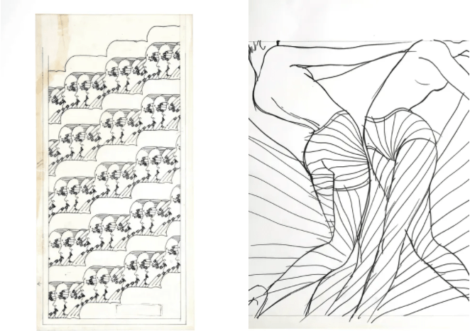 Furthermore “they borrowed styles from disparate eras, incorporating everything from Renaissance chiaroscuro, Bauhaus geometry, Art Deco patterns, and mass media motifs into their works.” according to their estate. Their practice testifies of an acute awareness and understanding of previous artistic movements, as expressed through their obsession for geometry and repetitive patterns visible in the architecture of the first part of the 20th century, inscribing their creation in the zeitgeist of the time beyond the fashion bubble.