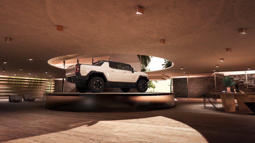 The multi-hyphenate creative thrives in blending and mixing references and mediums. She is always keen on exploring and collaborating, and one of her recent projects hints towards one of the new directions she is taking as her studio created a hyper-realist cyber-garage for LeBron James’s all-electric GMC Hummer EV… only available in the digital realm.