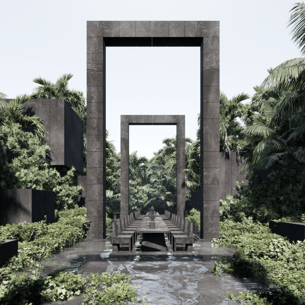 When it comes to her creation of the EXIT series, Ceren tends to take a top-down approach rather than a bottom-up one, although this is not a rule of thumb. She mentions she treats it as a journal, she thinks of a concept, executes and iterates messing around with volumes and masses until she finds it right, shares it and does not go back to it. Design, she says, informs textures as she focuses on creating architectural drama. Usually, she keeps it monochromatic not to distract the attention of the viewer as the focus is on the spatial quality.