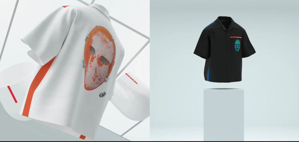 Each first Thursday of the month since December 2019, Prada drops an exclusive limited edition of 50 items, since June, it includes a digital twin, which seems to be one of the privileged alleys for fashion brands to establish their new online strategies, a way paved by RTFKT Studios. Quite interestingly, this first drop was made in collaboration with Cassius Hirst, son of Damien Hirst and featured black and white shirts showcasing the mask and brain scan signature of the artist.