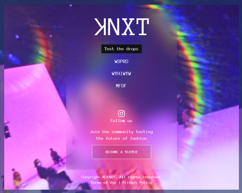 It is therefore interesting to see that Kering, owner of some of the most disruptive and forward luxury brands in the space, like Balenciaga and Gucci mentioned before, has quietly launched KNXT, first reported by Julie Zerbo from The Fashion Law. The website features drops and invites users to “Join the community testing the future of fashion”, where anyone can file a type form to have access and test some of the strategies launched by the project. As of now, three projects have been released.