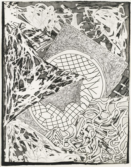 The artist moved to New York in 1958 after attending Yale University and gained recognition very early on. In New York, he was influenced by the work of Jackson Pollock but was inspired by artists like Barnett Newman and Jasper Johns who focused on one-dimensional flat surfaces. Frank Stella was interested in the picture-as-an-object paradigm, where abstraction ought not to represent anything in particular, nor reference emotions or familiar elements. The painting was “a flat surface with paint on it – nothing more” according to the artist. This is the period of the Black paintings series of which Die Fahne Hoch! (1959) is an example.