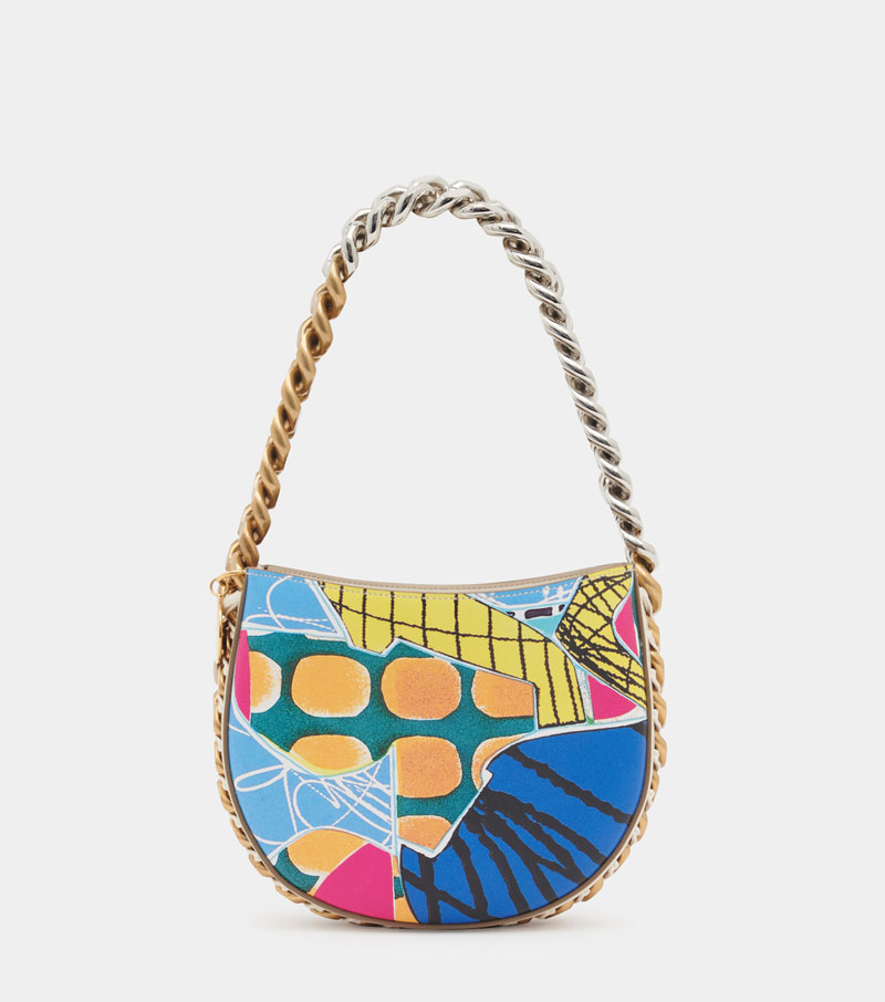 In this manner, the brand asserts their importance as cultural tastemakers and underlines the diversity of the Stella McCartney clients obsessed with both minimalism and maximalism. “The Frayme bag, a new icon and a perfect example of juxtapositions, mixes feminine and masculine energy with an oversized mixed galvanic chain strap and its sculptural lines felt like the perfect canvas for a print inspired by Frank’s work, Spectralia” says the designer. A diversity of profiles but also of facets reflective of the human complexity of her sophisticated clients.