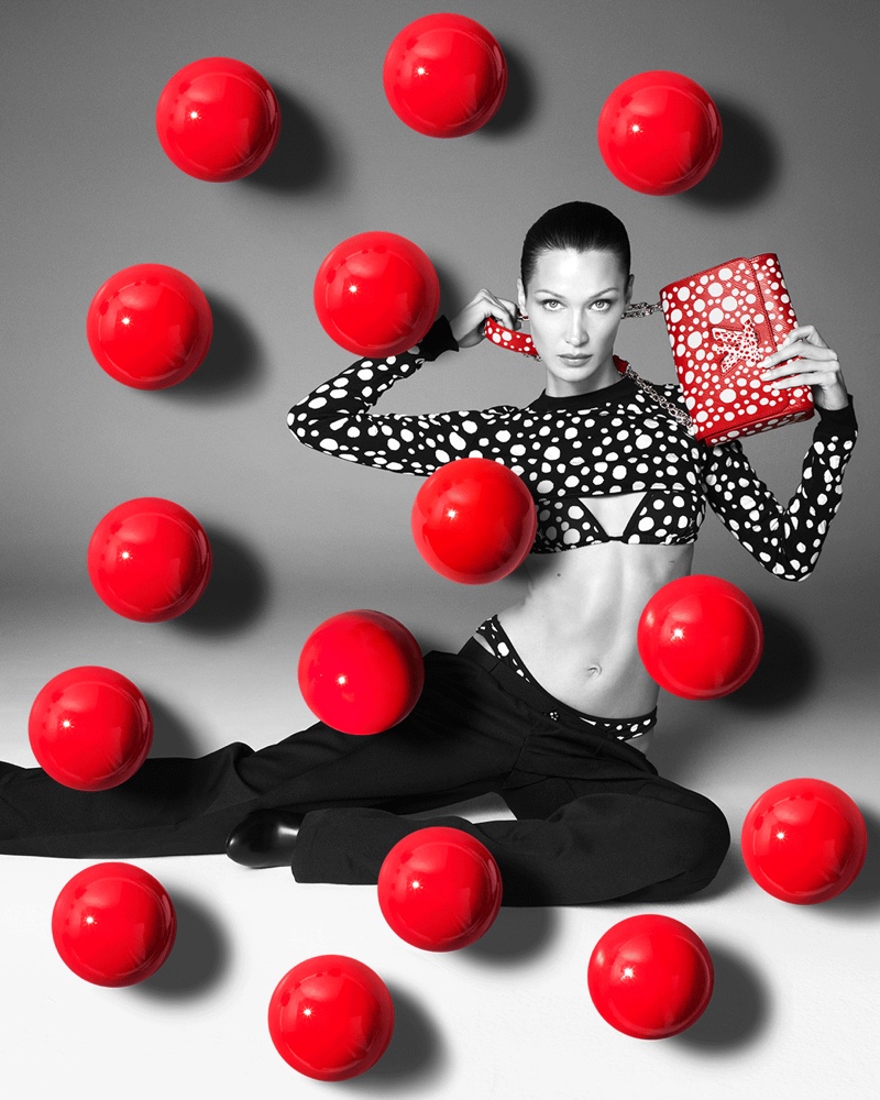 The campaign centers around models dancing in fields of metal balls, or mimicking painting some dots. From Bella Hadid to Gisele Bundchen to Karlie Kloss or Natalia Vodianova, Louis Vuitton hired the expected supermodels to promote the collaboration, but the campaign fails to unleash the full creative potential of a collaboration with Kusama whose art, as underlined by Arnault, is as simple as it is complex. In trying to make her – already accessible – art too mainstream, Louis Vuitton has ignored the subtleties of the appeal of a collaboration with the artist and her creative identity.