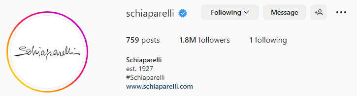 The Maison was the subject of the exhibit “Shocking! The Surreal World of Elsa Schiaparelli” at the Musée des Arts Décoratifs in Paris which opened on July 6, 2022 and just ended on January 22nd. It was built around the founder’s fascination for the extreme, best expressed in her numerous collaborations with Surrealist artists, one of the most famous being the lobster dress designed with Salvador Dalí. “The idea was to pay homage to Elsa’s relationship with artists, but also with visual culture” explained curator Olivier Gabet, the museum’s former director. She was close with the intellectuals of her time, including artists Man Ray and Meret Oppenheim or writer Jean Cocteau, and took inspiration from the body and the animal kingdom.