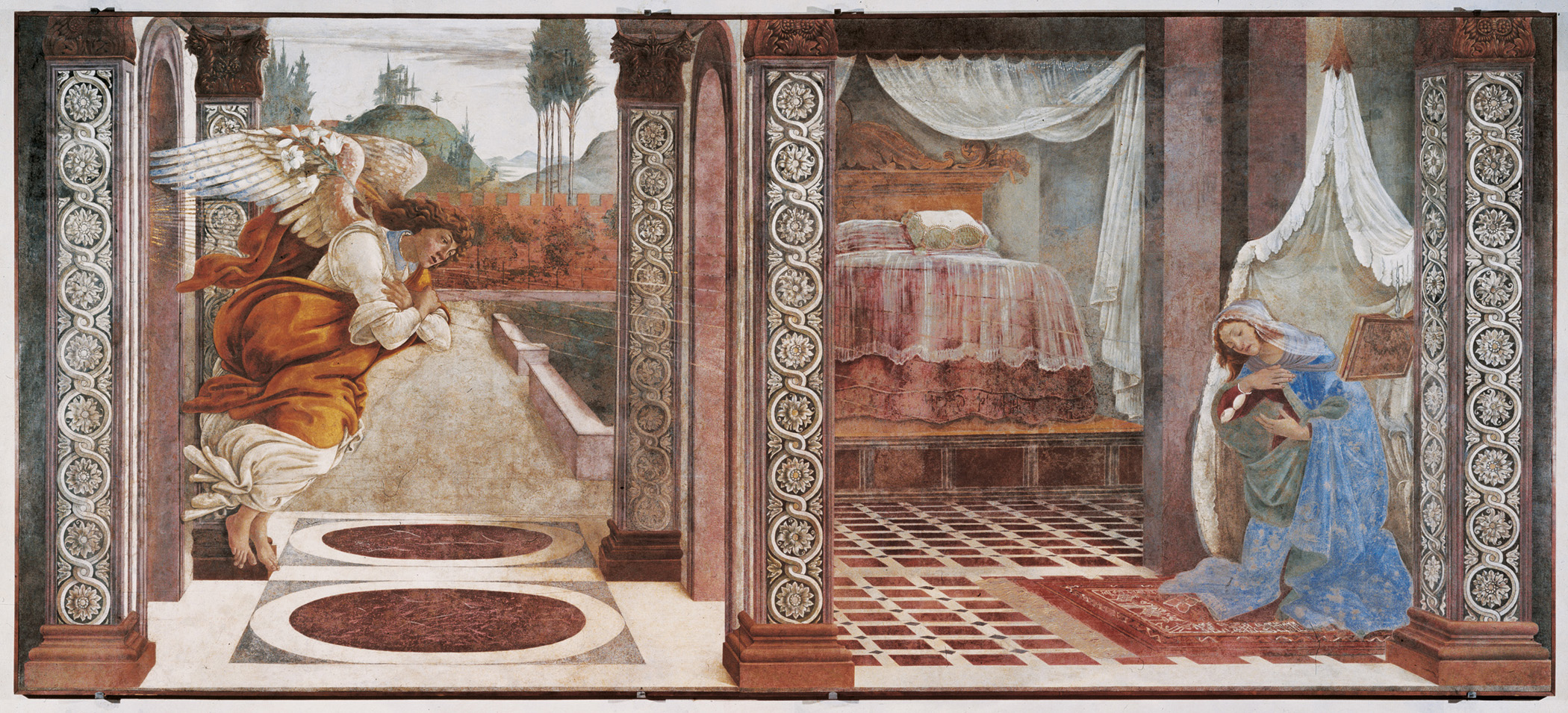 Botticelli’s The Annunciation of San Martino alla Scala (1481) & Ferragamo New Renaissance Campaign, courtesy Ferragamo