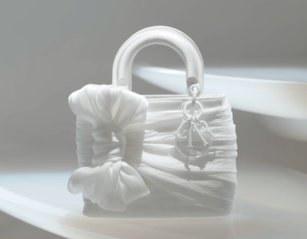 Mariko Mori is a multidisciplinary Japanese artist whose work is at the intersection of technology, spirituality and transcendence, fittingly referencing East and West. She is interested in the circle of life, cosmos and perpetuity (also echoing the number 8) For Dior, she created futuristic bags in soft pastels and iridescent materials. The first one is a reference to the ālaya – Buddhism’s eighth consciousness, that changes as the bag moves. The second is adorned with a bow while the third one is a mini minaudière looking like a bubbly time capsule. The O of the charm is a reference to her work Ring: One with Nature.