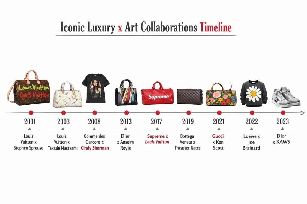 In recent years, the once-prolific partnerships between luxury houses and contemporary artists have grown notably scarce. Where the early 2010s were saturated with high-profile collaborations: Louis Vuitton with Yayoi Kusama, Dior with KAWS, or Supreme with a rotating cadre of blue-chip names, the current luxury landscape feels more introspective, more restrained. The absence of these cultural exchanges is not merely a creative lull; it signals a broader reorientation within the luxury sector, one shaped by economic unease, shifting consumer expectations, and an industry reckoning with the erosion of its own identity.