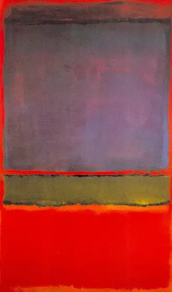 This is where Rothko’s spiritual dimension emerges, not in symbolism, but in experience. He conceived of painting as an encounter, almost liturgical in its quiet intensity. The absence of line or narrative forces a kind of stillness, a prolonged looking that becomes introspective. Color is not decorative but psychological. The violet presses inward, the green suspends, the red expands outward. Together, they create a tension that is less about contrast and more about coexistence, an equilibrium that never fully resolves.
